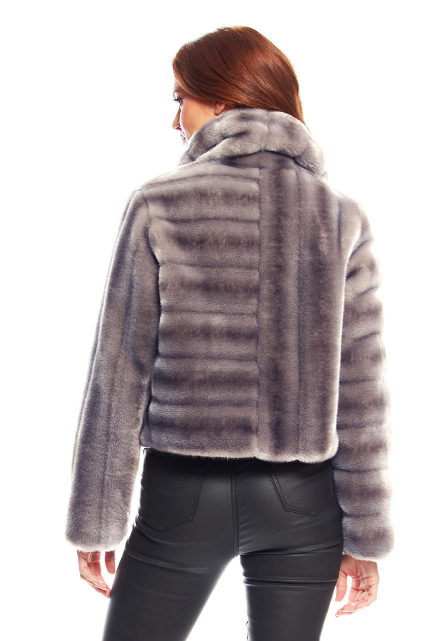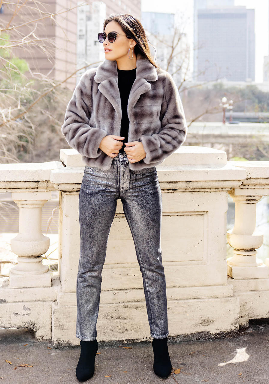 In-the-know fashion mavens recognize it's all in the details. Shaping soft, supple Grey Mink, for example, into the Maven Mink Jacket, simply by using directional pelt lines as the focal point, is futuristic and clever. Cleverness aside, this beautifully subtle fur with a Grey undercoat and rich Charcoal guard hairs and tipping, is fluid and universally appealing. The classic notch collar and fresh 20" length are sure to flatter and captivate any fashion maven. With the quality details every fashion maven expects, European fur hook closures and front-forward pockets are discretely concealed. Interesting and understated, the ever versatile Maven goes easily to work and after hours, the Maven Mink goes fashionably out for drinks and dinner.