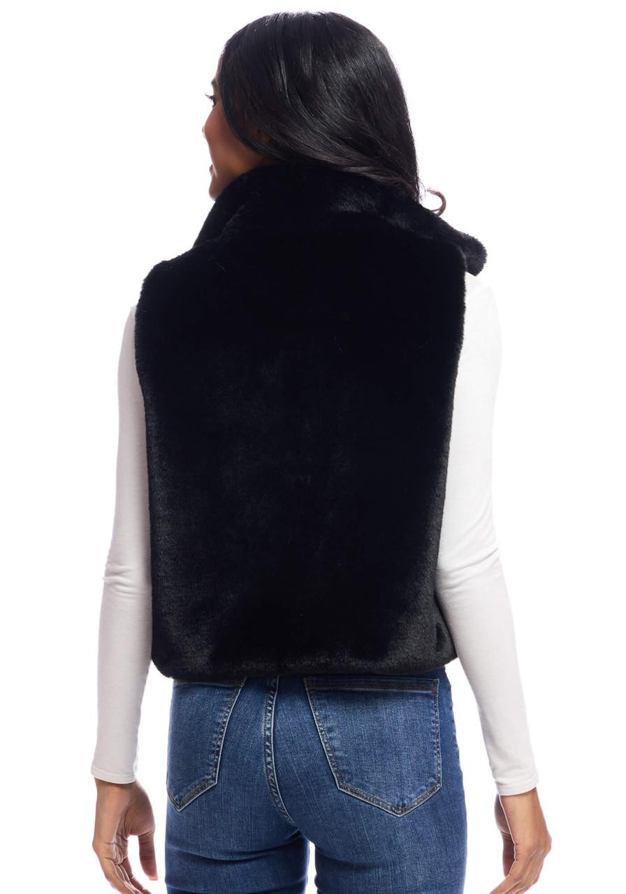 Short and sassy, the Le Mink Zip Vest will power through three seasons. Hyper-soft, Le Mink is sheared, compact and dense--all the better to flatter effortlessly. A standup collar lies open and flat. The front zipper with double zipper guards extends to the collar top for hem-to-chin coziness. A ring zipper pull adds a fun, casual detail. Convenient front-forward welt pockets add an ironic, tailored vibe. Close-fitting and contemporary, the 18" Le Mink elevates tees and jeans in Fall. For Winter warmth, Le Mink tops sweaters and flared trousers. Come Spring, the inky Black Le Mink Zip Vest looks fresh over your favorite White pants. Get excited if easy-care is your 'love language'. The Le Mink refreshes with machine wash/line dry.