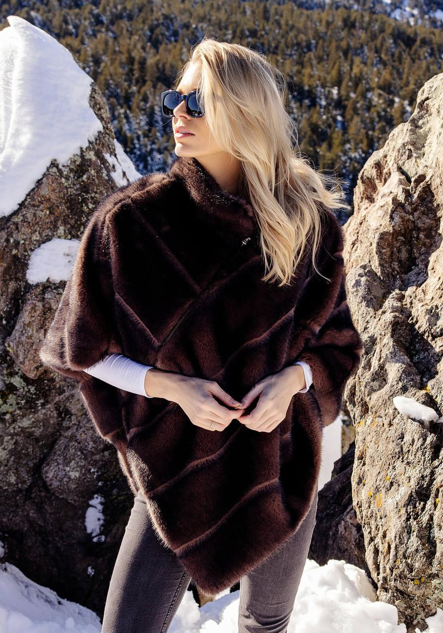 The Carly Zip Poncho is more than super-cute. Indeed, Carly's history dates back to around 500 B.C. to South America's Andes Mountains. More than protection from the elements, the poncho evolved to indicate status and respect, depending on the patterns woven into the rough cloth. With travel came migration and the poncho evovled to reflect the various cultures where the poncho was embraced for its simple design that allows mobility and affords a canvas for creativity. The 30" Carly proves some things never change. We love that Whiskey sheared Mink is the perfect poncho medium. The 19"-long shoulder seams that keep the Carly in place, plus the standup collar would surely draw envious side glances. Add its easy-entry Black zipper and matching Whiskey velvet lining and we suspect the earliest poncho devotees would give two thumbs up to our contemporary machine-wash Carly Zip Poncho.