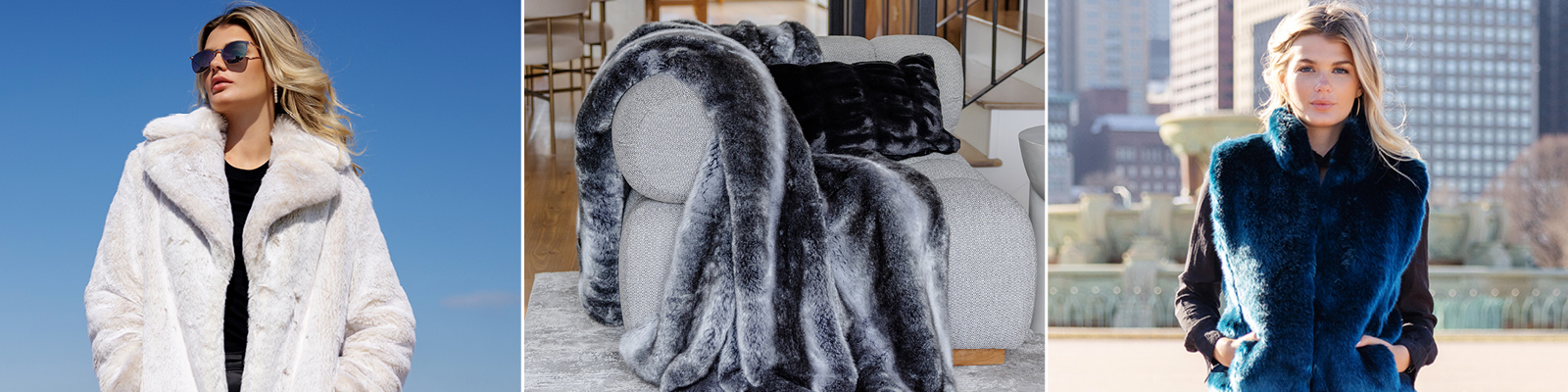 Couture Collection Steel Blue Mink Faux Fur Throws