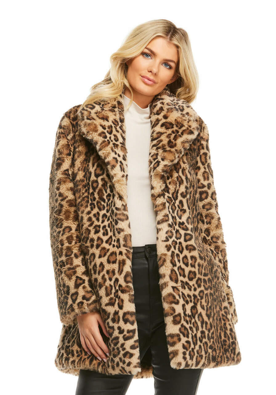 Winter--we knew it was coming--it always does! And our Leopard-print Le Mink notch collar jacket will make all the difference! Incredibly soft, this sheared fur has the touch, the texture and fluidity of animal fur, without the guilt! Lush and plush, you may gasp when you experience its sensuous touch. Combined with a classic, timeless design, it's a jacket you'll treasure for many, many seasons. Imagine a blustery day and you're walking contentedly with the oversize notch collar turned up around your face. With European fur hook closures to keep out the wind, your hands find the warmth of concealed pockets. Instantaneously, you recognize this 32" jacket is the warmest, most wonderful coat you've ever owned! Winter? It's coming-- but you're fabulously prepared!
