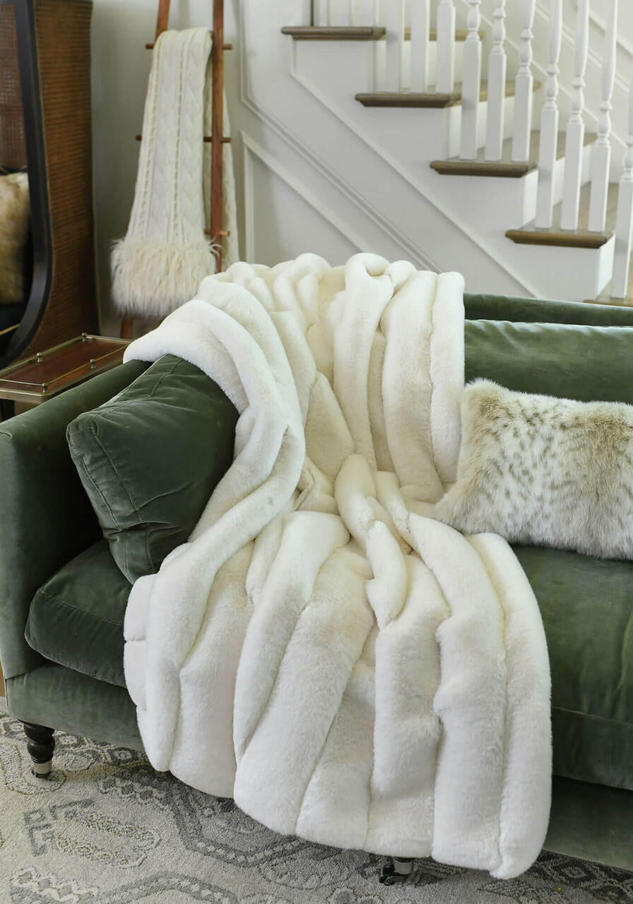 Affordable, yet still luxurious and of the same high quality that established our "World's Finest" reputation, the Posh Throw Collection is like no other. In Ivory Mink, with an unrivaled touch and fluid, liquid hand, it makes every corner cozy! Thick and fluffy with pelt lines spaced 4" apart, the Posh Throw is lined with the same super-soft velvet used in all our throws. Promising to be the most luxe sleep-inducing blanket ever, the Ivory Mink Posh Throw is available in our best-selling 60" x 72" size. A fabulous neutral, it's the throw you'll want in every room! Meant to be used and enjoyed, our Posh Collection Ivory Mink throw is easy-care machine wash/line dry.