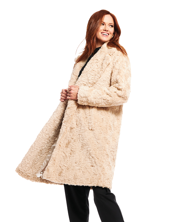 Consider this the sophisticated sister to your go-to neutral wool coat. Vintage Persian is a low-pile faux fur (aka not too “fluffy” but still uber soft) that is a perfect upgrade. The neutral tones will blend seamlessly into any wardrobe, and the traditional cut means it will stay there for years to come.