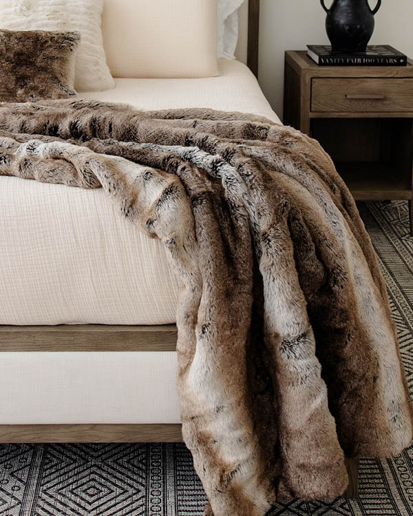 Instantly change up the look and feel of any room with one of our signature throw blankets. Not only do they look cozy…. They FEEL cozy. With the weight and luxurious feel of a real fur, you’ll feel instantly comforted when you curl up with a faux fur throw. This grey rabbit is a nice, neutral option that will easily fit any décor or aesthetic.
