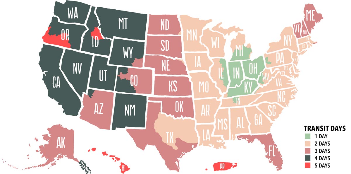 Ground Shipping - Our standard shipping method, typically arrives in one to five days, depending on your location. Orders shipped to Alaska, Hawaii and US territories require an additional shipping charge of $10.
