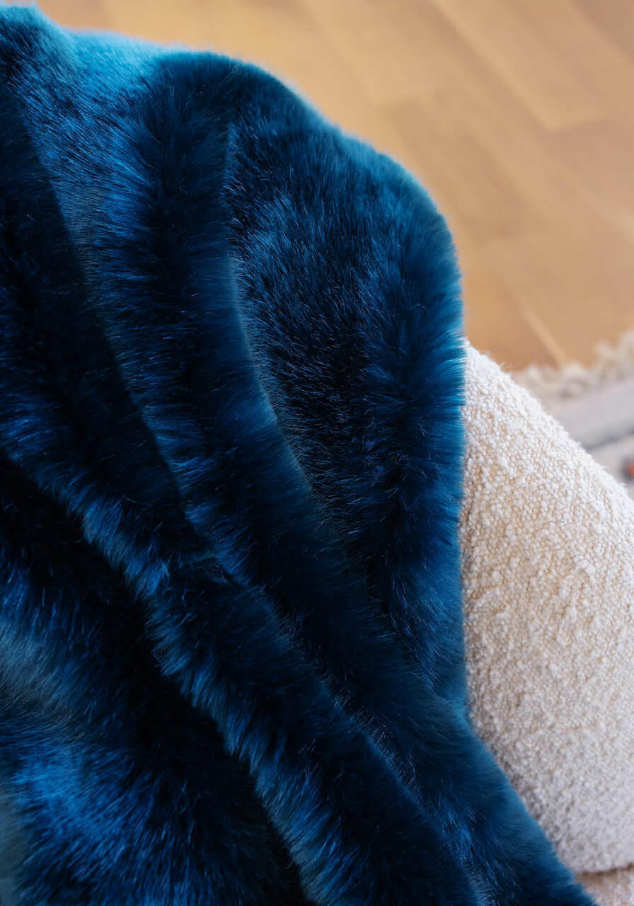 Creating a tranquil, serene setting may start with a Sapphire Mink Throw! Certain to soothe the savage beast, along with relaxing music and Chardonnay, tactile Sapphire Mink has a transformative quality. Edgy and urban, rich dark Sapphire Mink has a touch that elevates it to our Couture Collection. Medium in length, the lush, dense pile has a smooth, silky feel that rivals nature's own. In a deep hue suggestive of soothing slumber, this sophisticated fur invites spontaneous napping and relaxed reading. Achieving that perfect drape is easy: simply fold four or five pleats on the throw end, then toss. Thrown at the foot of a bed, over a sofa back or easy chair, fur magically and artfully puddles and drapes. Velvet-lined and available in three sizes, Sapphire Mink throws are more than beautiful collectibles. Like all our throws, Sapphire Mink throws offers the added convenience of easy-care machine wash/line dry.