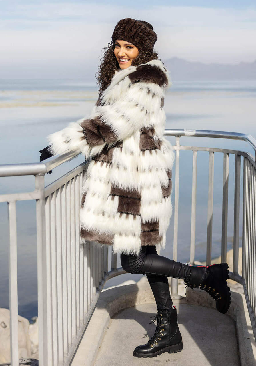 Do you REALLY need more fabulous-ness in your life? Of course you do! So, from an epic fur, we created an iconic coat. For the Alter Ego's foundation, Black and White, always contemporary and graphic, is combined with Fox and Mink, for lush lavishness. In varying lengths for dynamic depth, the sheared Black Mink blocks counterbalance the longer White Fox, while whisps of Black Fox tie it all together. A substantial shawl collar, that turns up for warmth, elongates the stroller-length 36" silhouette. Pockets are concealed and European fur hooks disappear into the whisper-soft fur. What to do with so much fabulous-ness? We predict you'll wear our Alter Ego over skirts for work when "professional and polished" is required; with a cocktail dress for a dressy event; and dressed down with leggings, tall boots and a sweater for a casual dinner out.